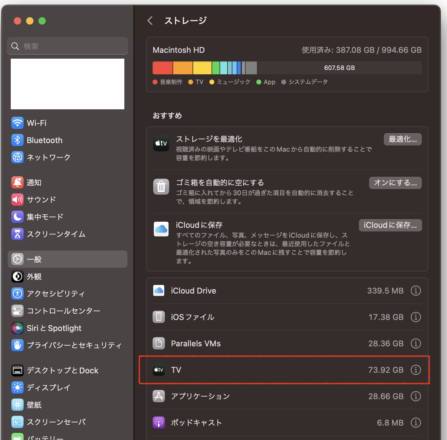 >apple tvアプリを一度も使ったことがないのに25GBもあり