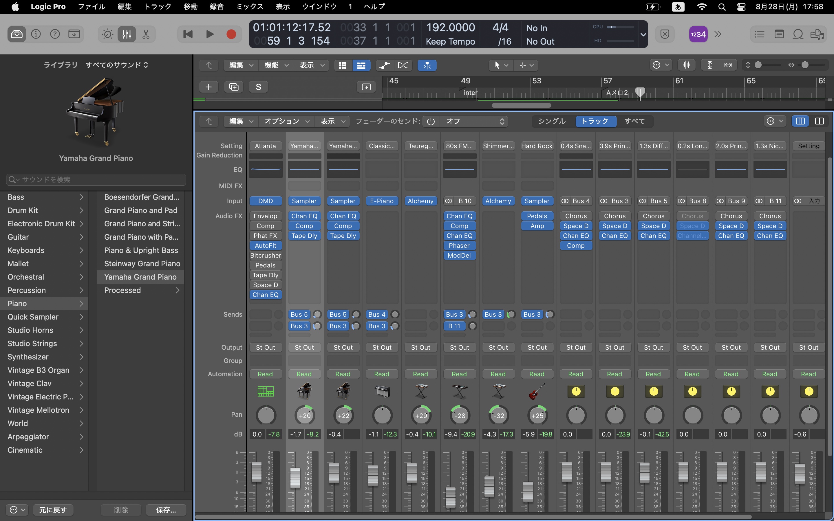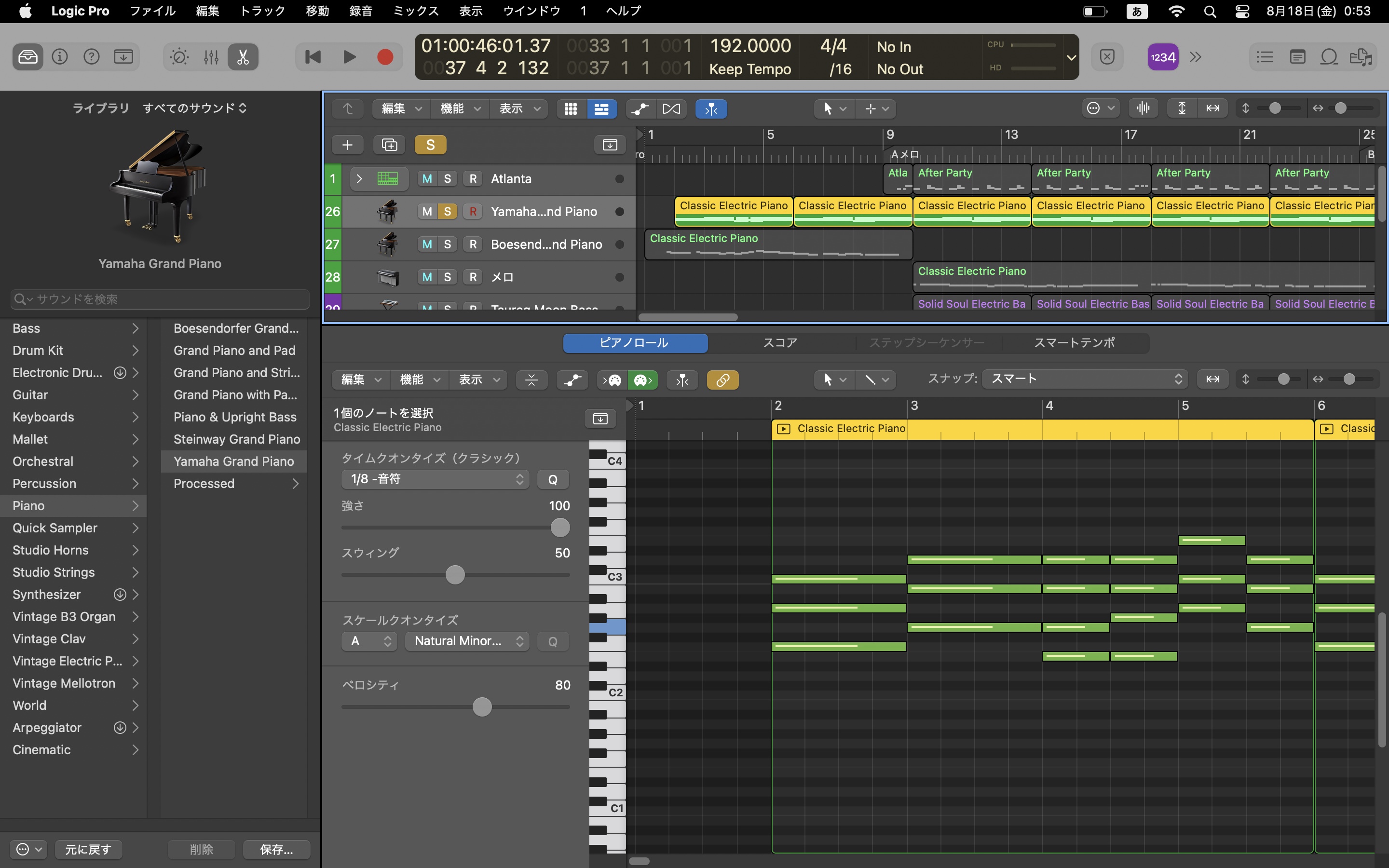 なるほどライブラリからSamplerのYamaha Grand Pianoを選択して,ピアノロールで⌘+クリックで音符入力されているのですね。