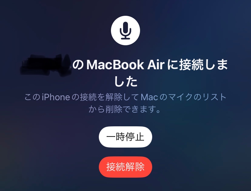 Macでgaragebandを使っていた時に、iPhoneとマイクを接続してしまったみたいです。garagebandを開くと下の写真のような通知がiPhoneに来ます。その度に接続解除を押すのですが、また接続されるみたいでこのような通知が何回も来ます。解除したいのですが、どうすればいいでしょうか?