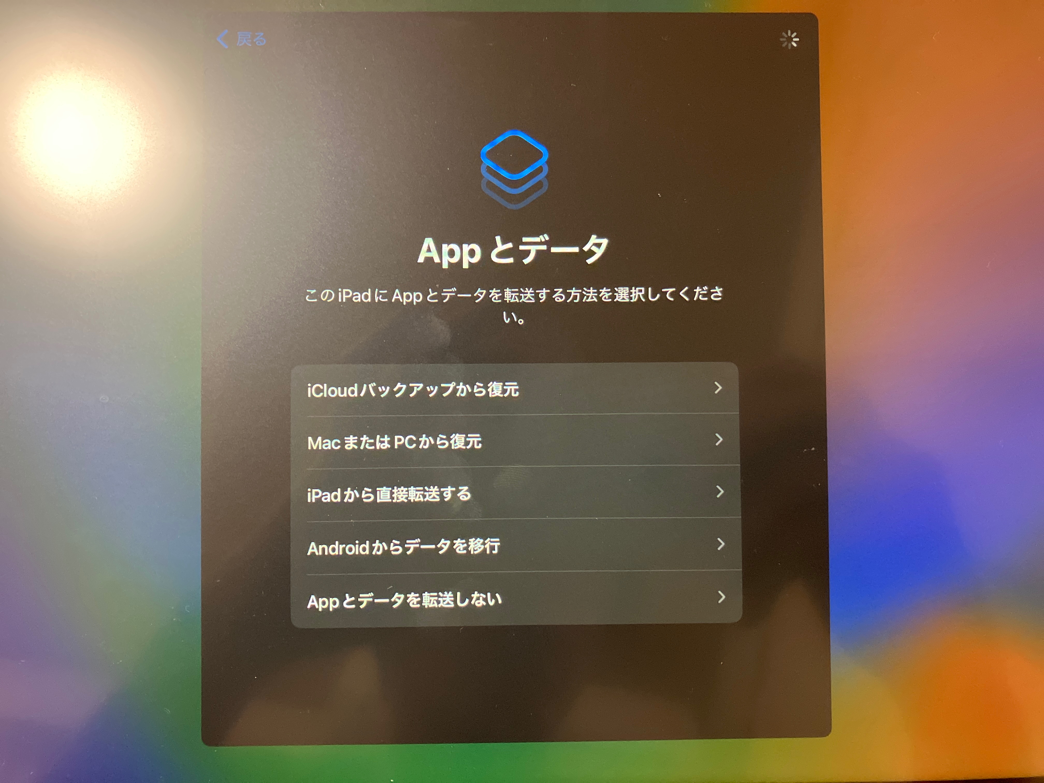 icloudからのバックアップに失敗し転送しないを押しても進まない、