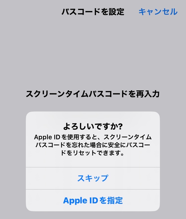 スクリーンタイムのパスコードを忘れた場合はこの情報を使ってリセットできるのですが、スキップしたりはしませんでしたか?