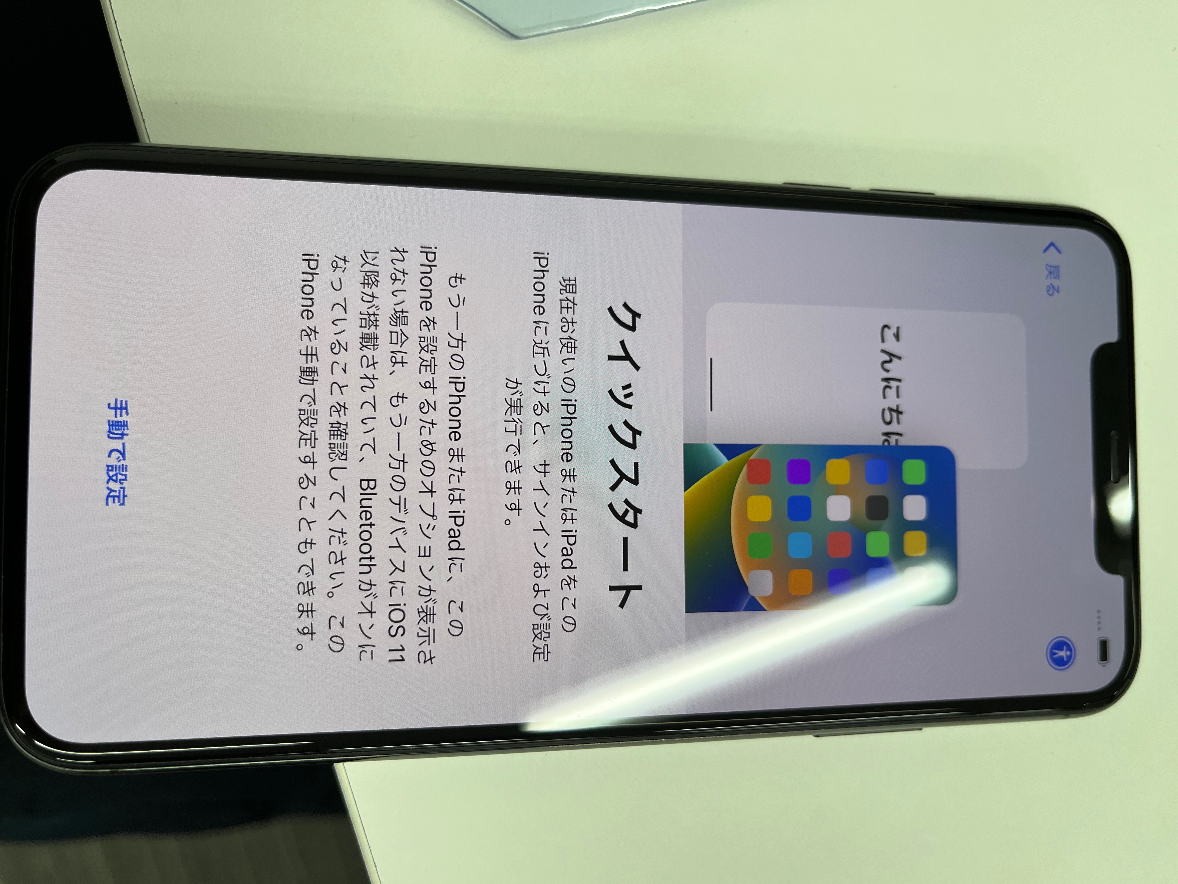 電源を入れ『Hello』→日本語を選択→国または地域を選択→クイックスタート→続けるをタップしたら添付写真の画面になります…