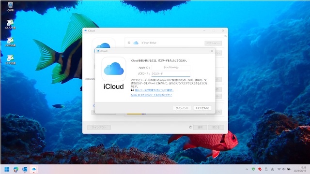 Windows11パソコンで数日前から「iCloudを使い続けるには、パスワードを入力してください。」というメッセージのポップアップが出て、キャンセルボタンをクリックしたり、「✕」をクリックしていったん消しても数十秒後にはまた同じポップアップが出て消すことかできません。