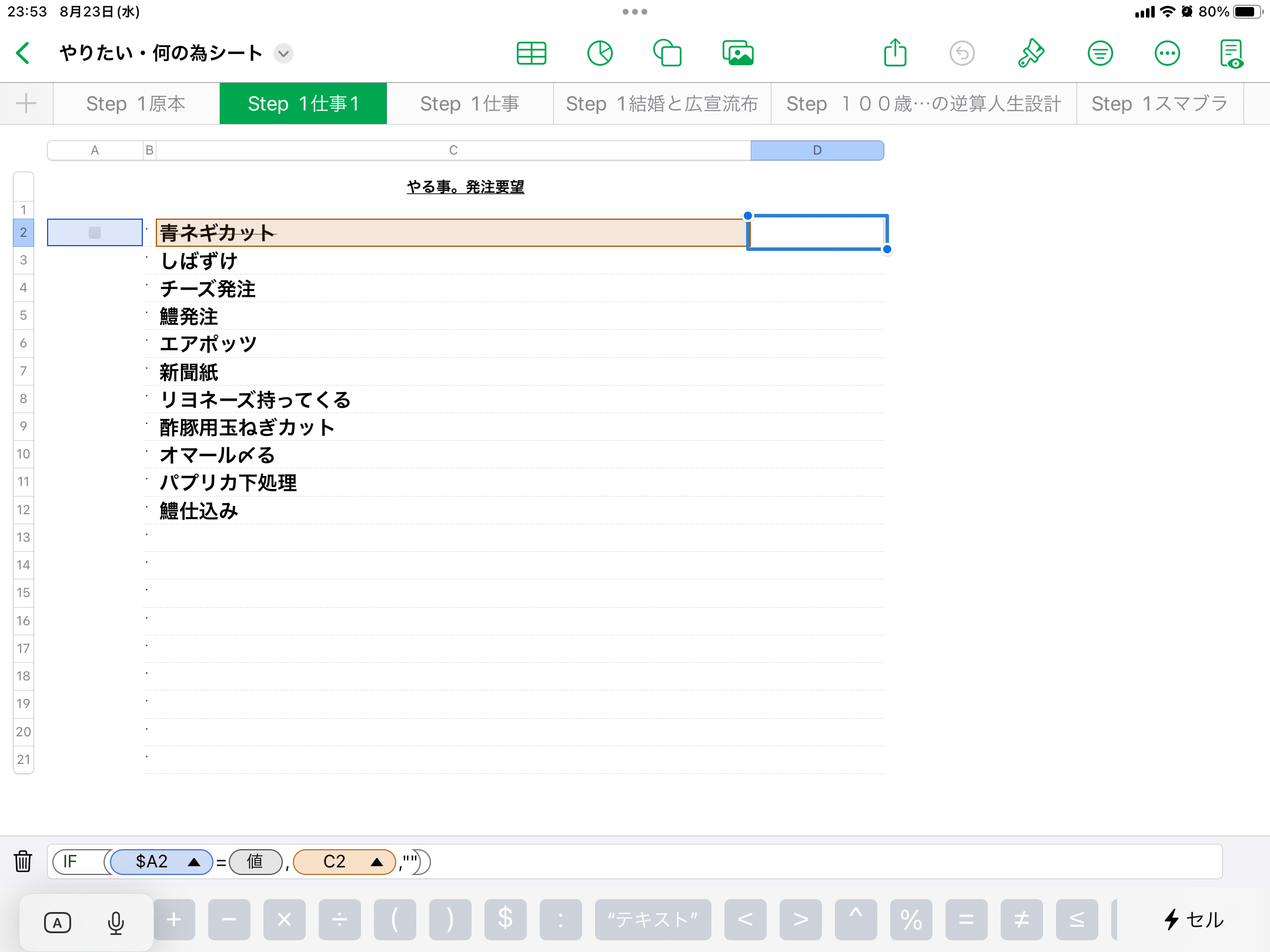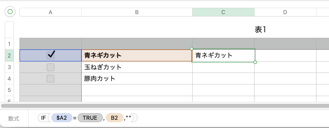 青ネギカットの項目ですが、✔️をつけたら文字が取り消し線つけれる用にnumbersでしたいのですがそんなことはできるのでしょうか? お忙しい中すいません🙇🏻♂️