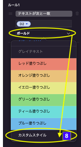 Numbersで条件付きの書式設定を行う場合、他のセルを条件にすることができないんですよ。
