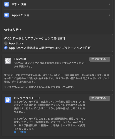 プライバシーとセキュリティの「USB-C接続でアクセサリーに接続を許可する」の項目を確認しようとしたところ