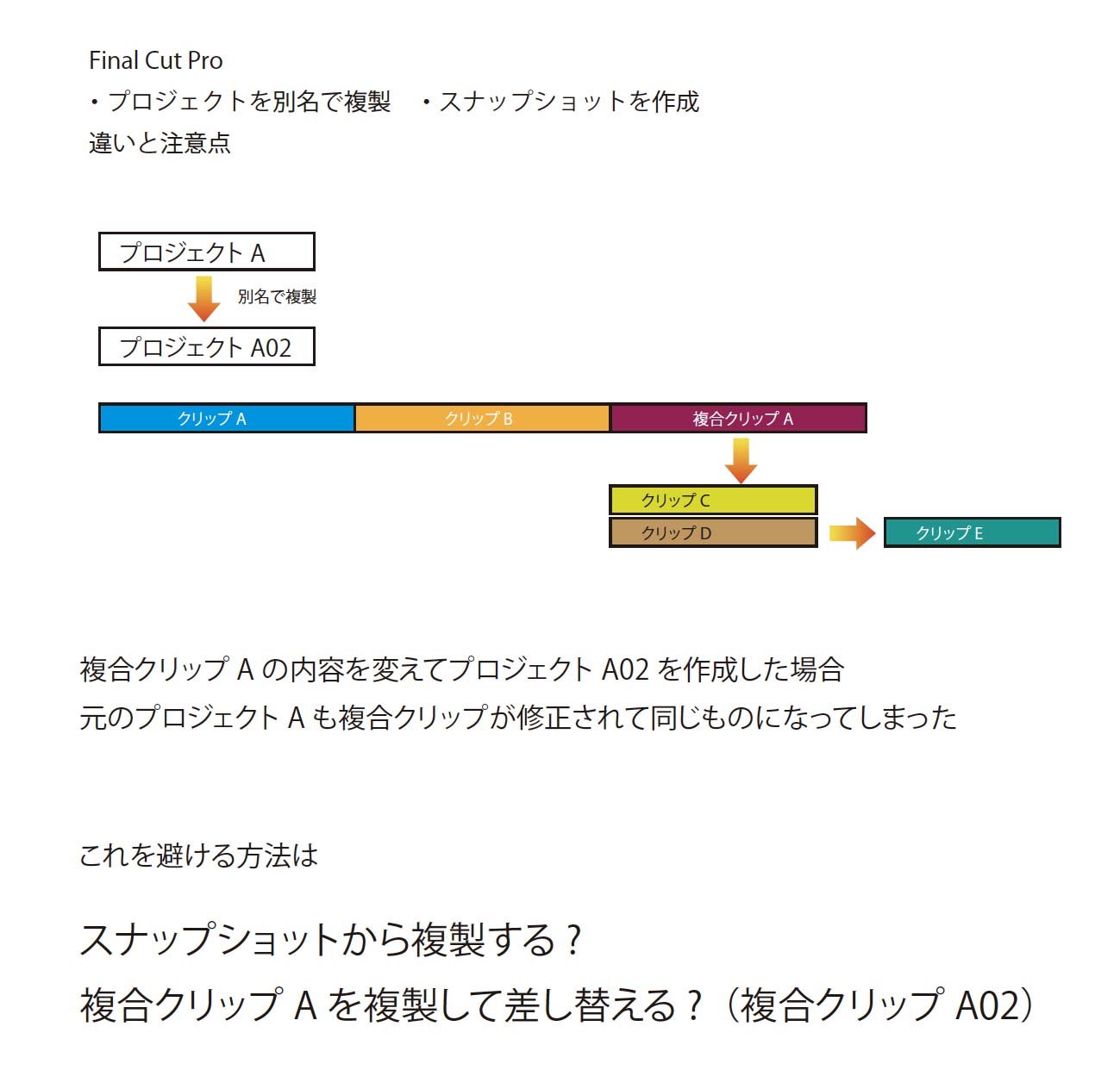 Final Cut Pro - プロジェクトの複製とスナップショットの違いと注意点