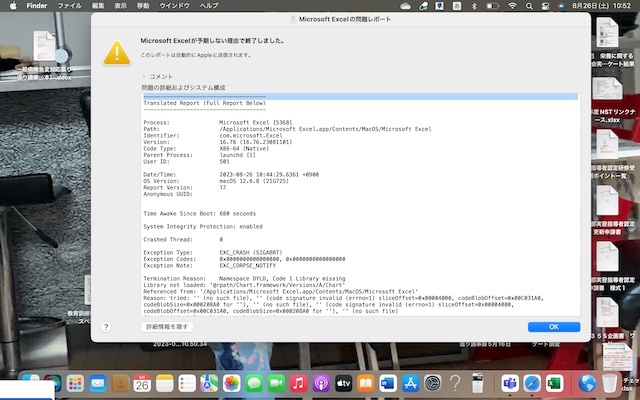 ユーザのユーザプロフィール: ももよくま ももよくま ユーザレベル: レベル 3 559 ポイント 2023/08/26 01:06 恵美119 への返信 Excelのバージョンは分かりますか?当方の環境(Big Surですが)では16.76ですね。App Storeを眺めていると、結構頻繁なバグアップデートが散見されます。 返信 リンク
