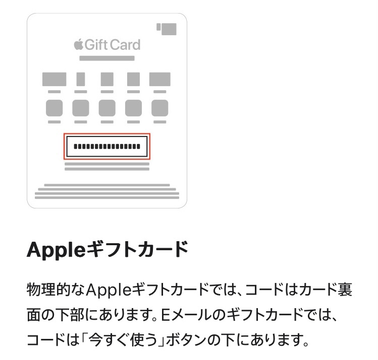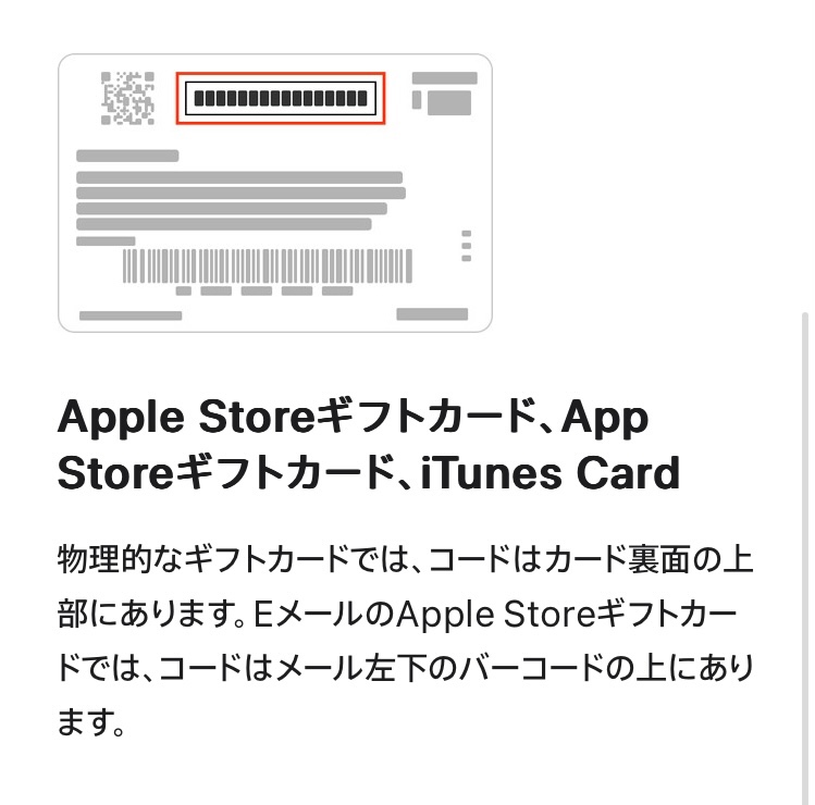 (ちなみに、その下のコードは、Apple サポートへの問い合わせ時に使用する、Apple ギフトカードの「シリアル番号」になります)