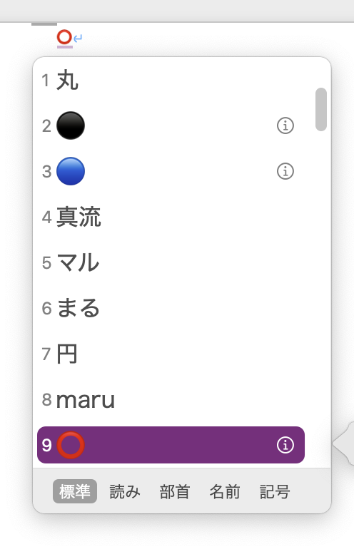 変換の選択肢が「9」に固定されたまま、変換候補の文字が上へ流れていく。