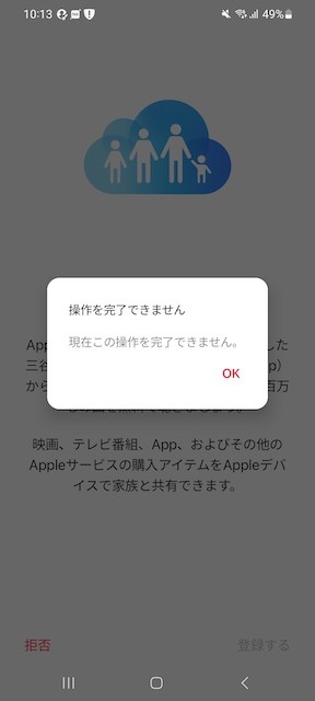 Apple Music をファミリー共有してもらったが、「完了出来ません」と表示される