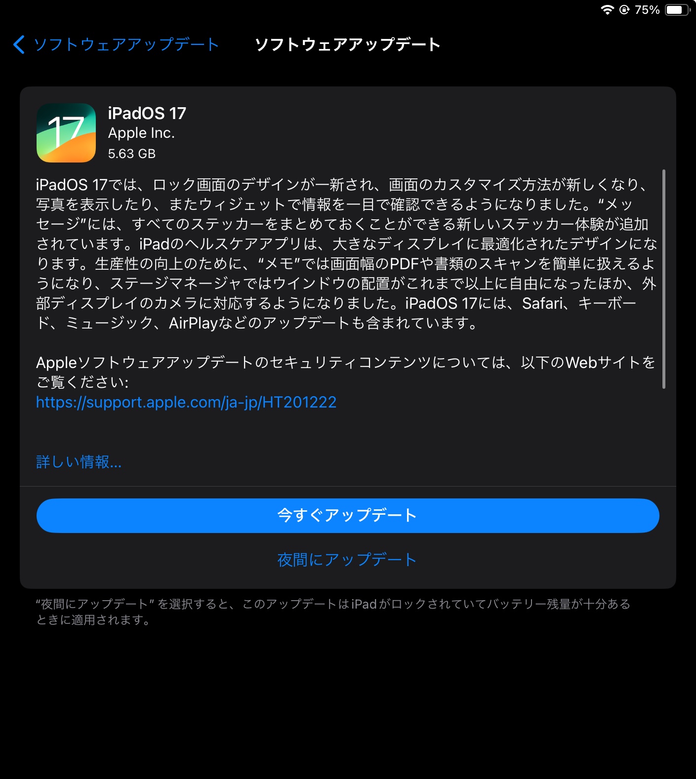 今すぐアップデート又は夜間にアップデートをタップすれば即時か否かを別にして公式版のiPadOSがインストールされます。