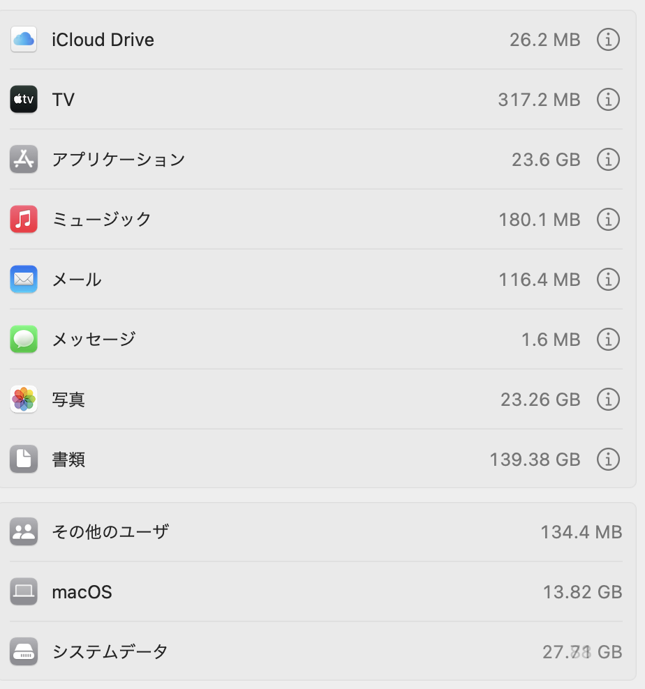 >(その場合、MacBook Pro と MacBookAir の写真の容量 29.97 GB と 24.7 MB は、どの様にして確認 されていますでしょうか?)