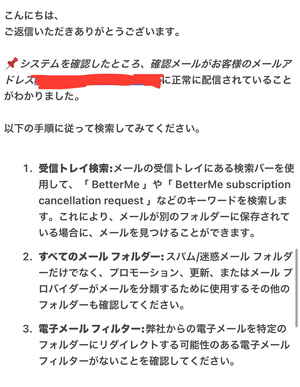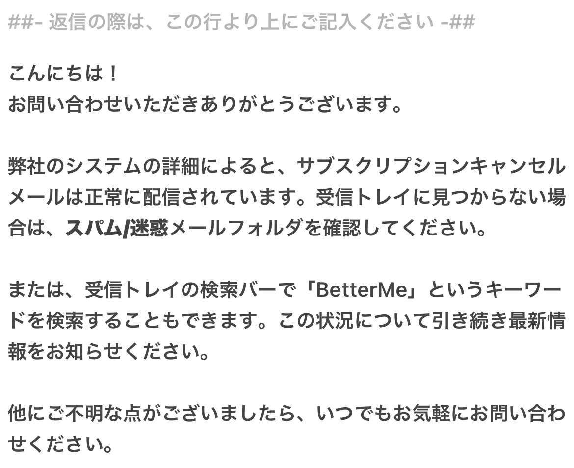もしくは、問い合わせにあるsupport@betterme.worldへ日本語でいいので、