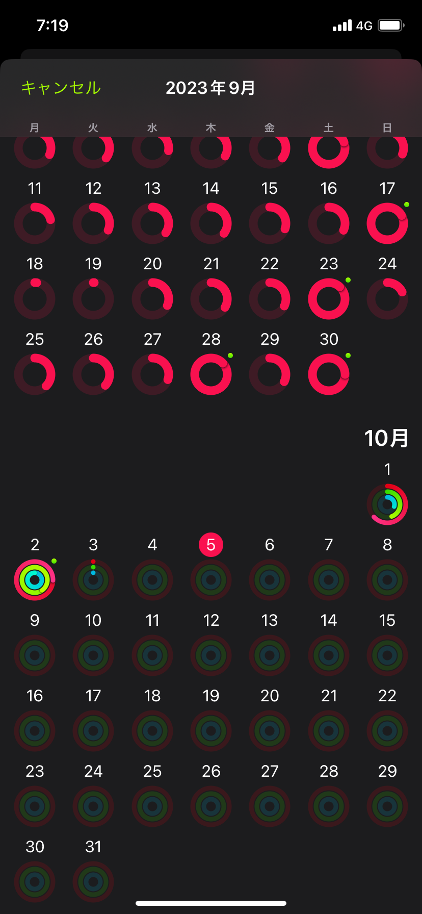 Apple Watch を使う前は、iPhoneでも赤色のムーブのみ記録されていました。