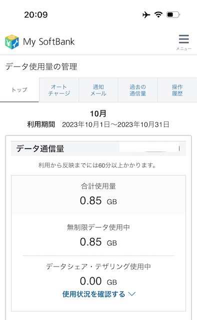 ですが、先ほど試しにと思って機内モードをオフにちょっとしてみて、データ使用量を見たところデータが発生していました。