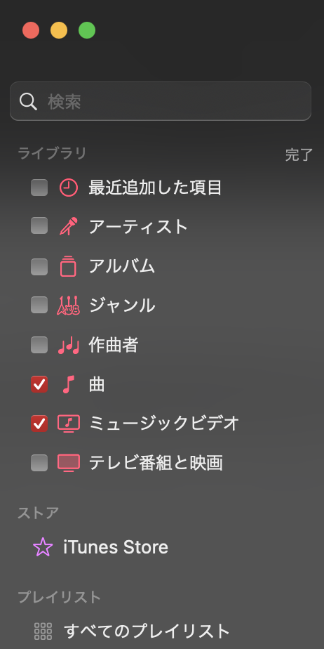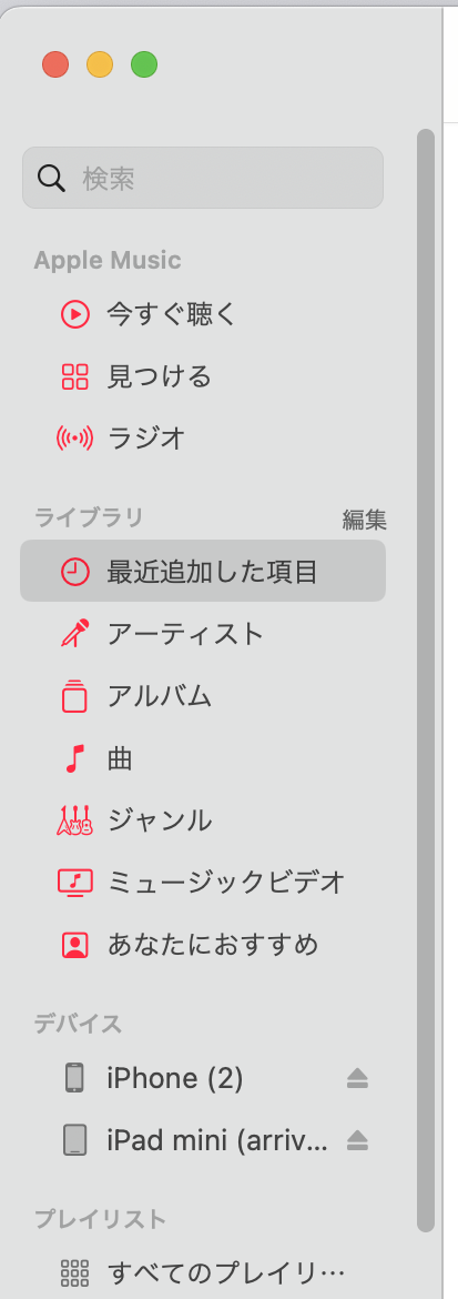私は「最近追加した項目」などの使いにくいものは非表示にして、自分でスマートプレイリストを作成しています。(Apple Musicサブスクリプションは未登録)