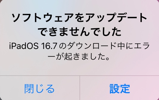 「ソフトウェアをアップデート出来ませんでした iPadOS 16.7 のダウンロード中にエラーが起きました」と出てアップデート出来ません