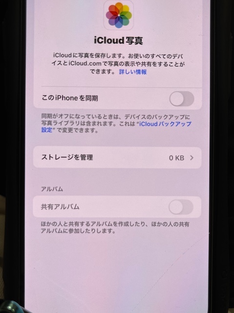 共有アルバムのオンオフの切り替えができない。