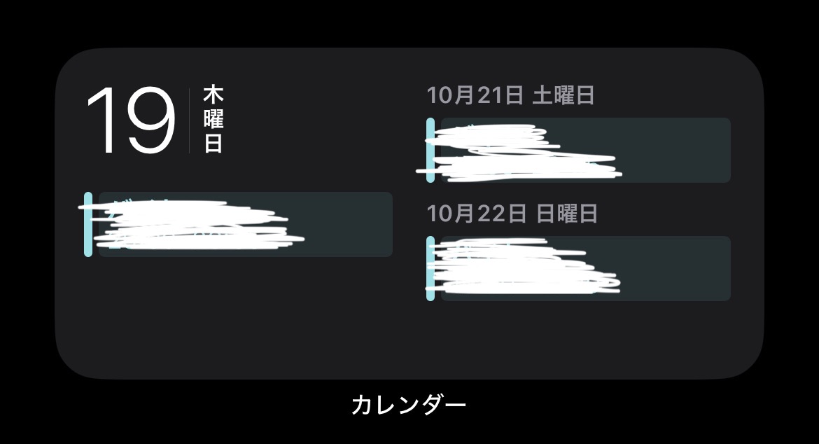 iPhone純正カレンダーアプリのウィジェットで左に予定、右に月カレンダーが表示されるウィジェットがあると思いますが、Googleカレンダーと同期すると何故だか左右ともに予定が表示されてしまいます。月カレンダーが消えてしまうのです。