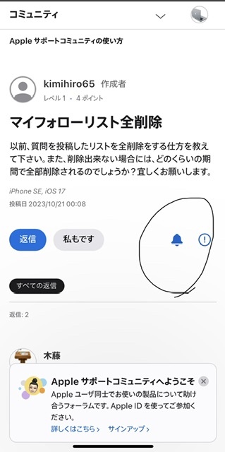 スカイブルー193様、ご親切ありがとうございますが、やはりベルマークをタップしてもやはり消えませんでした。諦めます!ありがとうございました。 かしこ