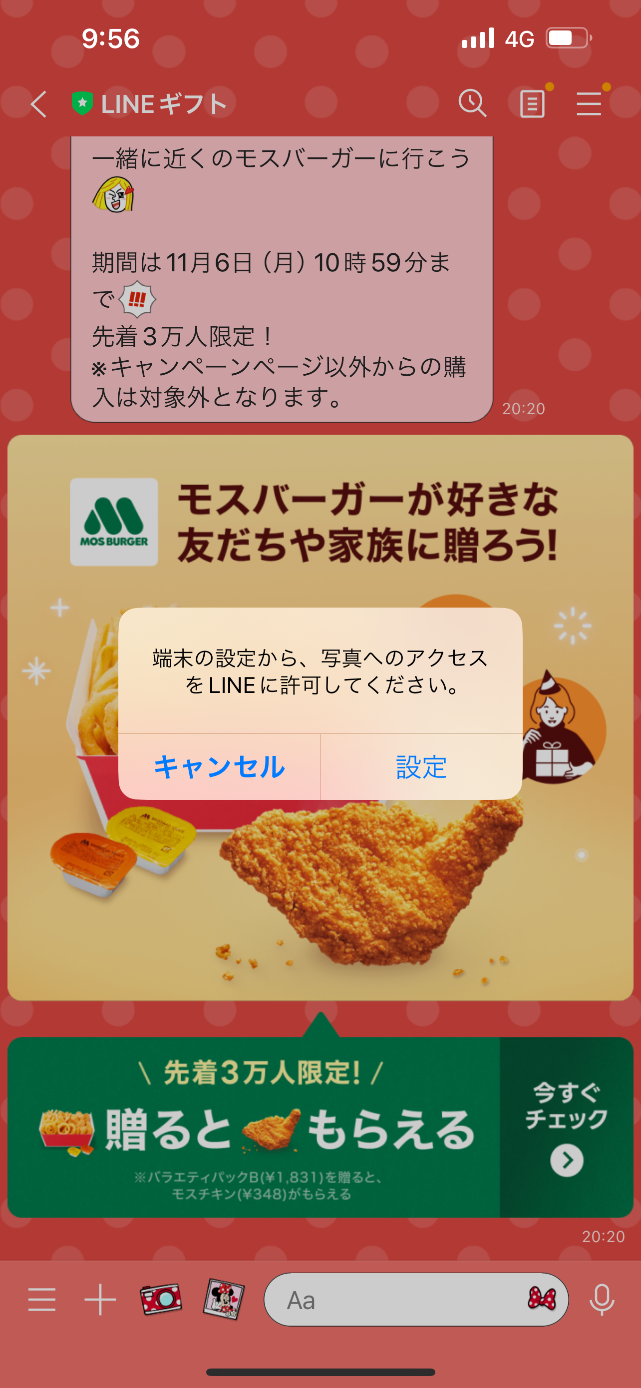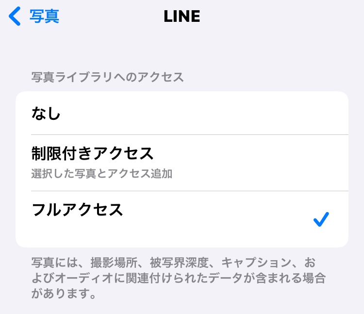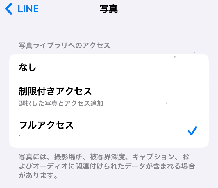 LINE - ” 写真へのアクセスを許可 ” でフルアクセスが選べない