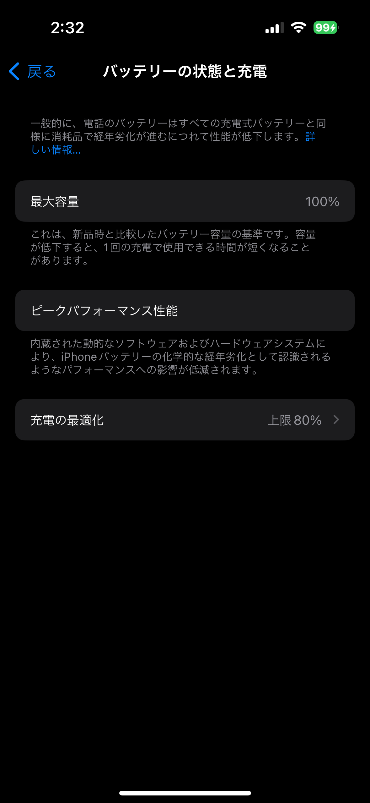 「充電の最適化」で「上限 80 %」に設定しているのに 100 % まで充電される