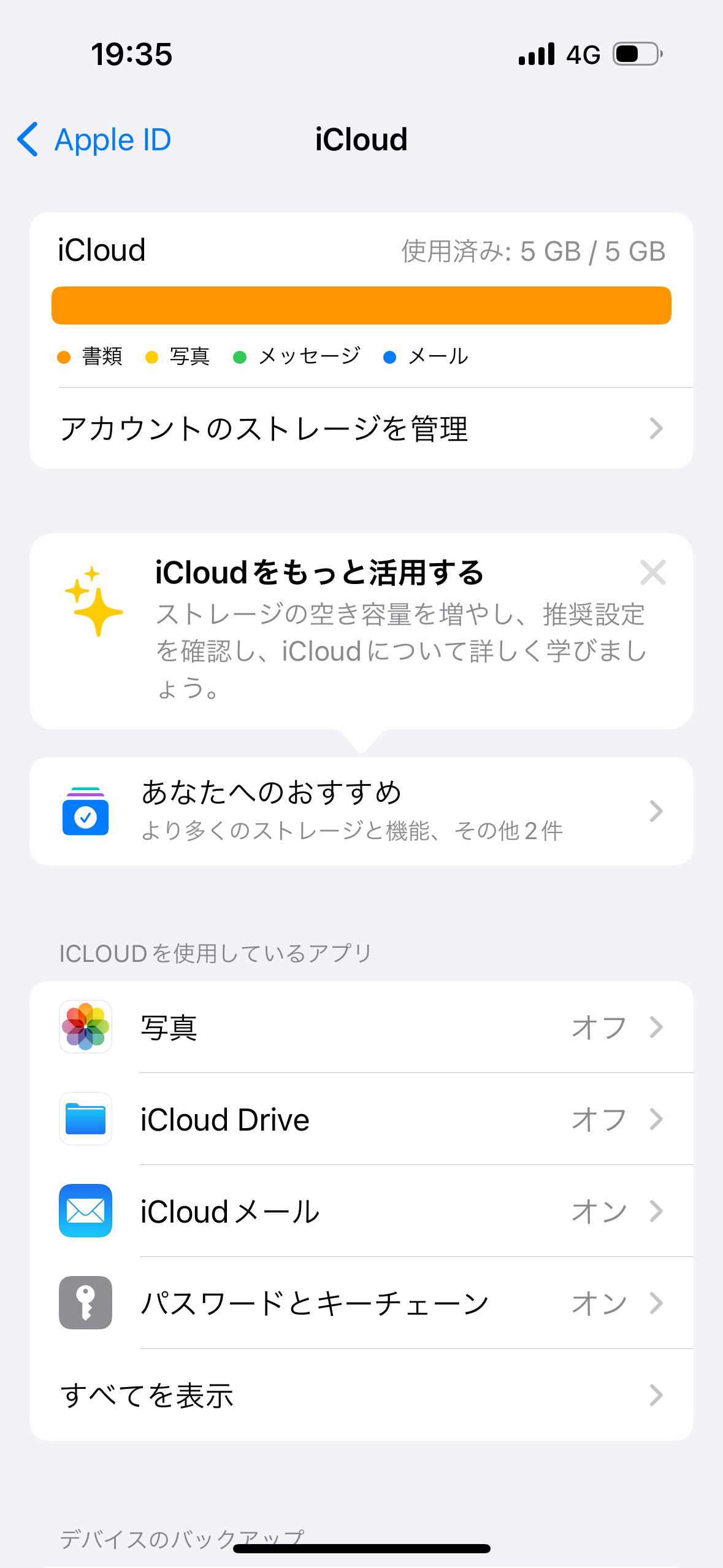 iCloudも書類のみで5GBフルで使われているのは、ちょっと理解しにくいところですが、今回の質問ではないのでさらには突っ込まないでおきます。