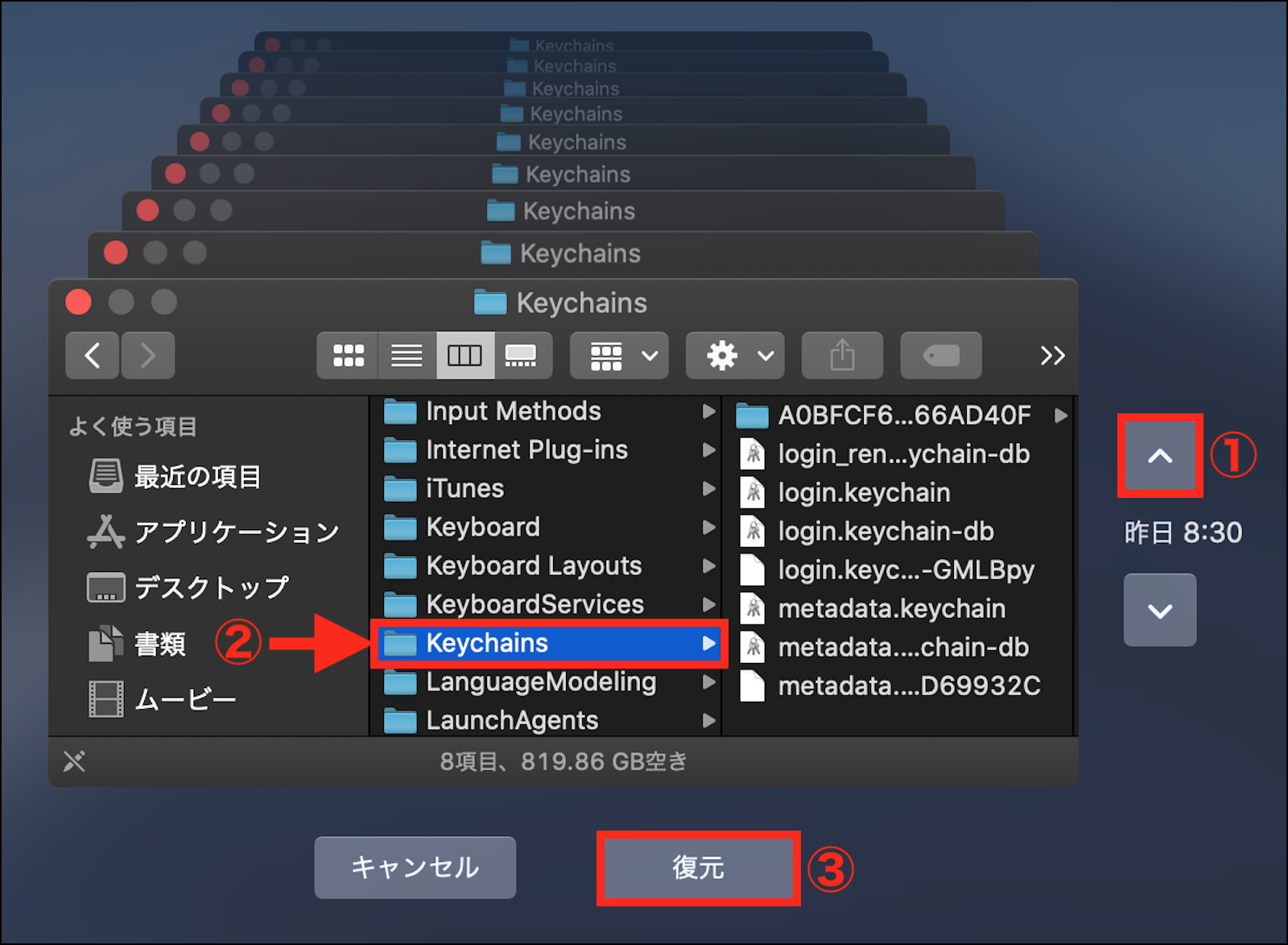 デフォルトキーチェーンを復元したい Sonoma 14.0