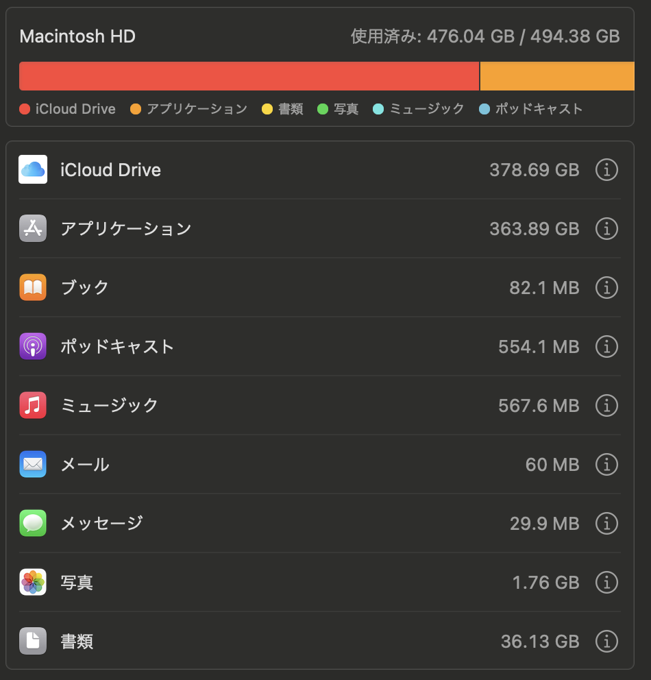 ストレージ容量が不足してしまったため、ストレージ容量を確認したところ、