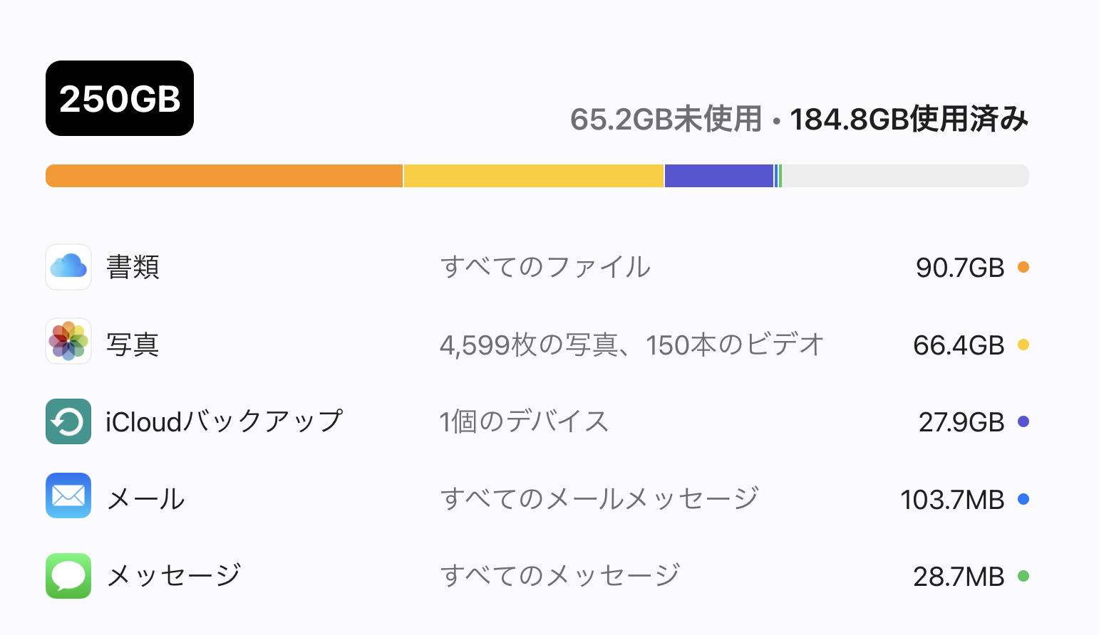 iCloud Drive と アプリケーションの容量だけで、本体容量をオーバーしていました。
