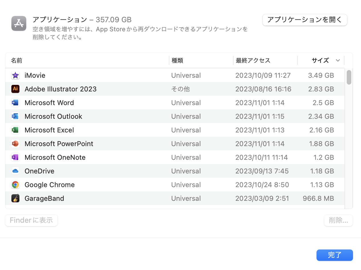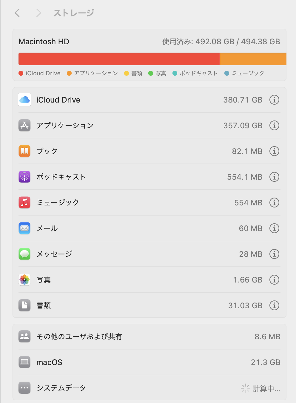ストレージ容量が不足してしまったため、ストレージ容量を確認したところ、