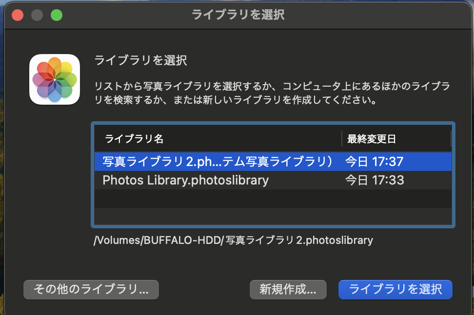 ちなみに写真appのライブラリはHDD内に作っています。