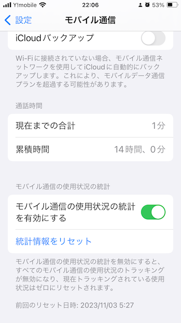 iOS 17.1 -「モバイルデータ通信」のデータ表示が不正確