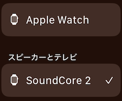 手元のApple Watch 9(watchOS 10.1)ですと、そこにはBluetoothスピーカ(Anker製SoundCore2)が表示され、音も支障なくそこから出せている状況です。