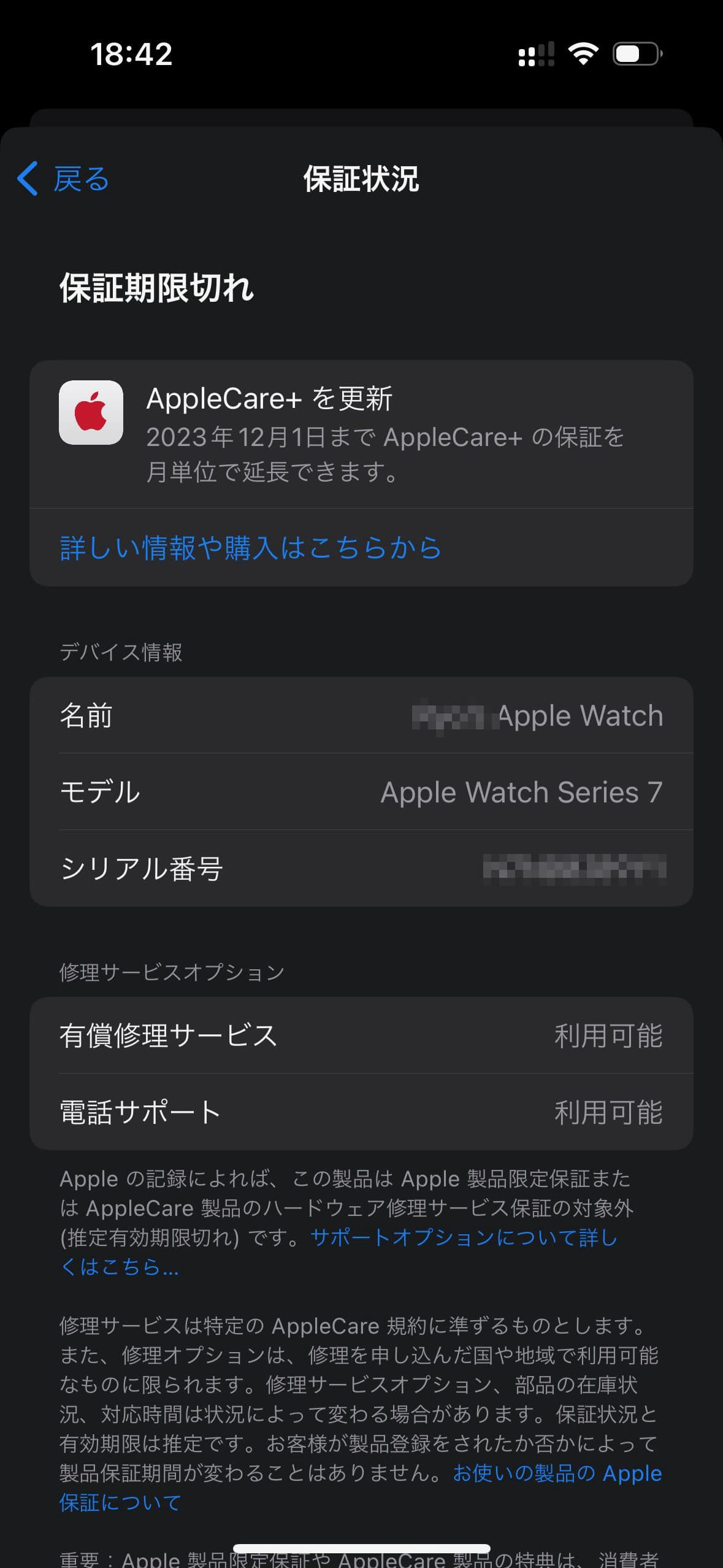 延長可能になるとサポートアプリ内の「保証状況の確認」をタップし該当のデバイスを選ぶと