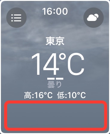 「新しいApple Watchとして設定…」までも実行しましたが「天気アプリ」の画面の赤枠で囲んだ部分に天気情報(ユーザーガイドにある)は表示されません!!