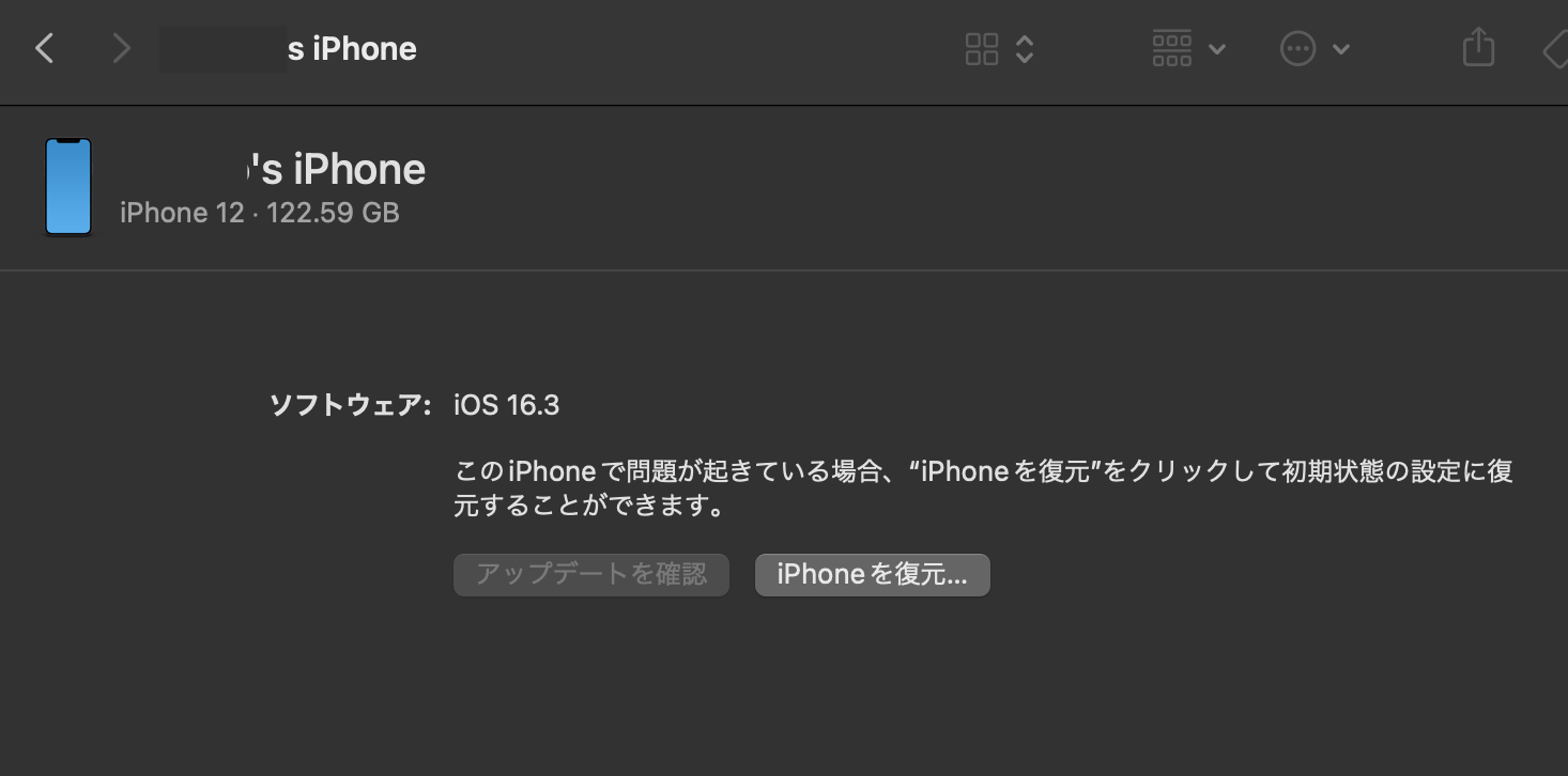MacにiPhoneを接続してバックアップを取りたいのですが、
