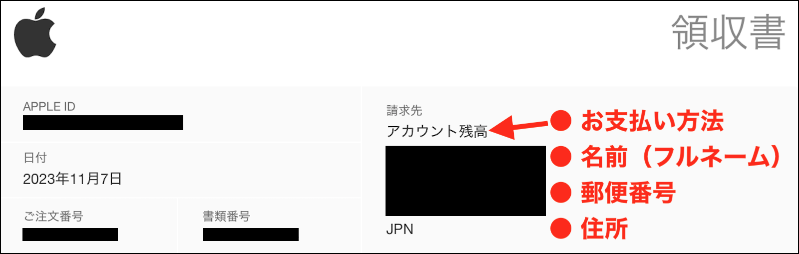 (お支払い方法が「アカウント残高」と表示されているのは、私が支払いに使用したお支払い方法が Apple アカウントの残高だったからです)