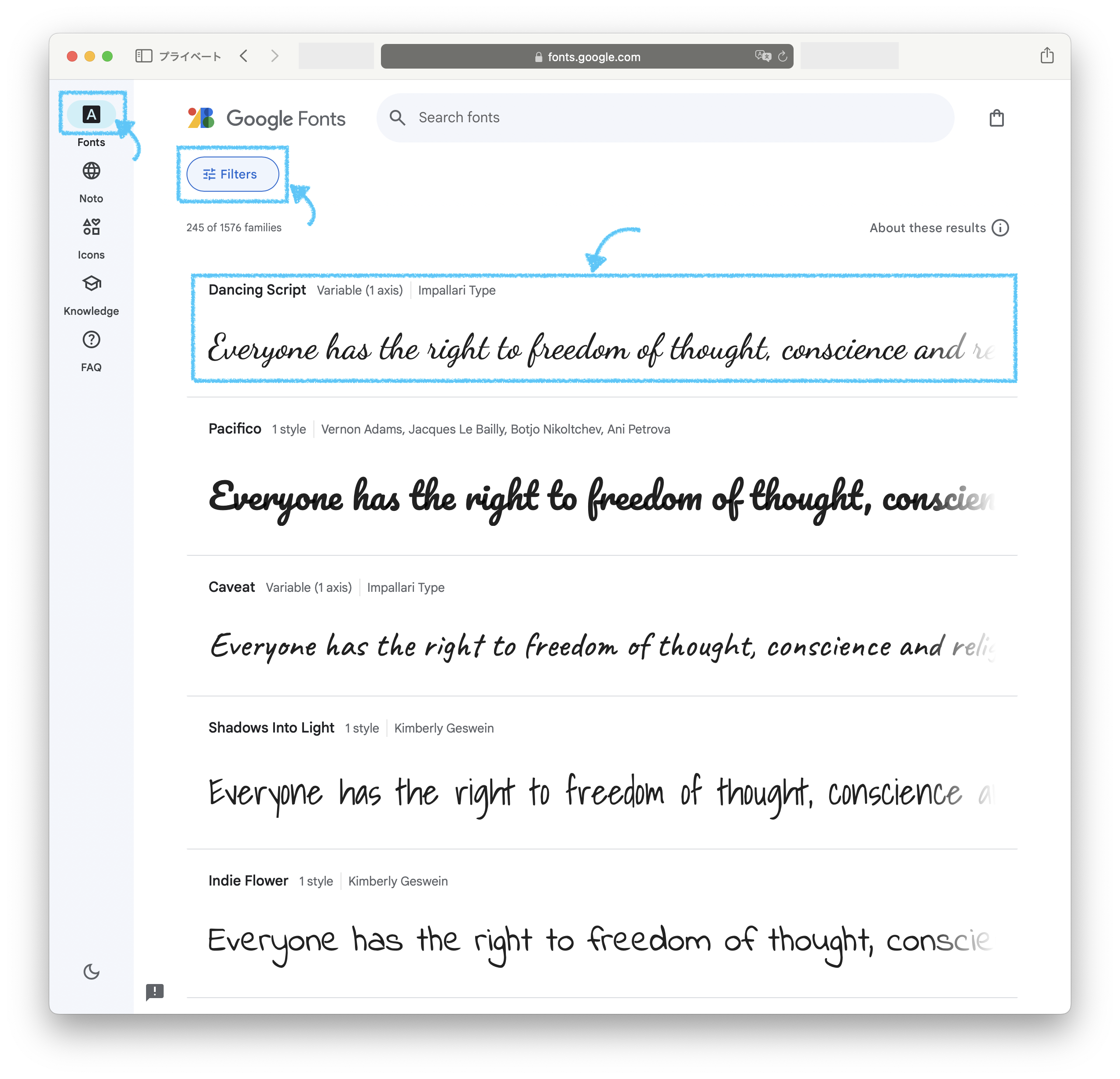 Filters > Latin > Handwriting でかなり絞れると思います。