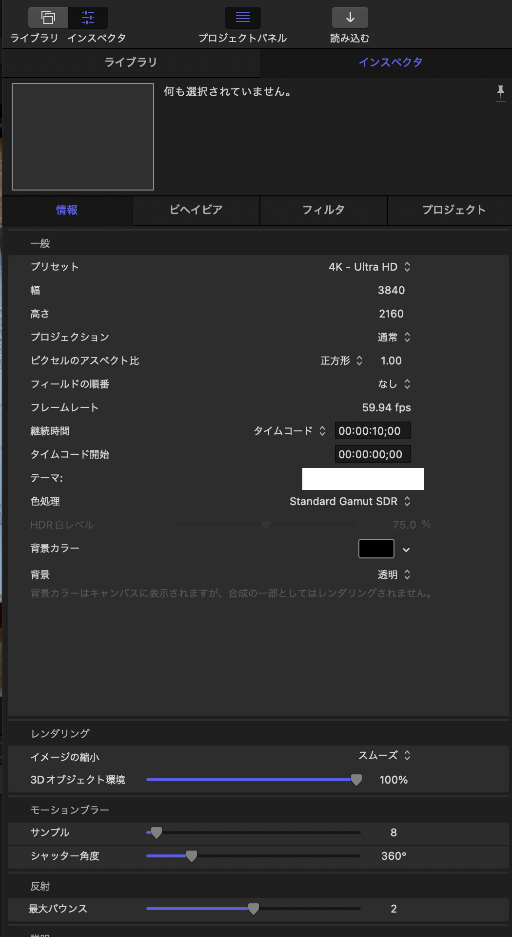 更にMotion5で起動の音源もいれてみましたが、Final Cut PRoでは反映されません。今後のテンプレート用ですので、Final CutPro内でも編集nできるように...