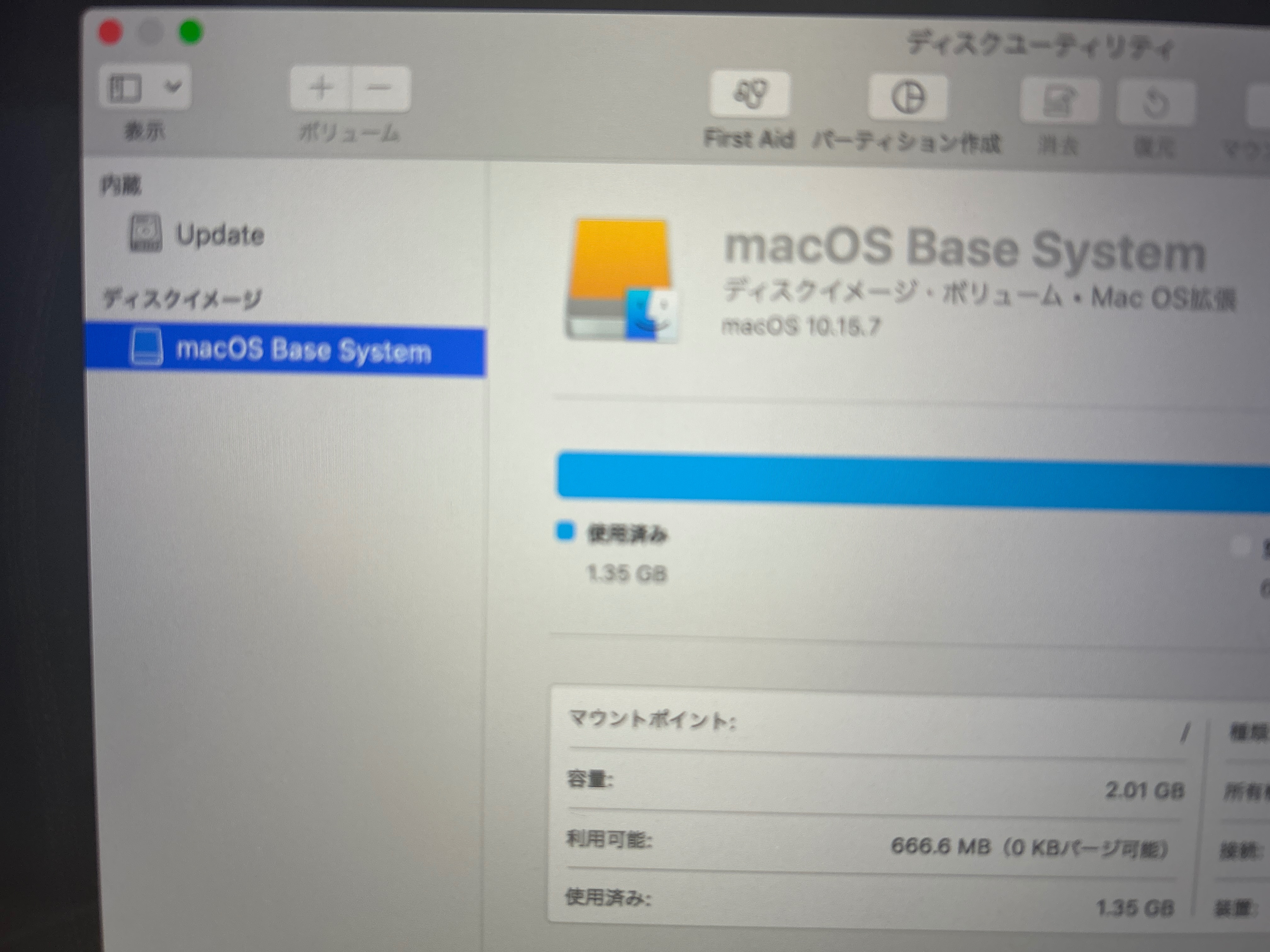 ディスクユーティリティからみた現在のディスクはこの二つのみになっています。