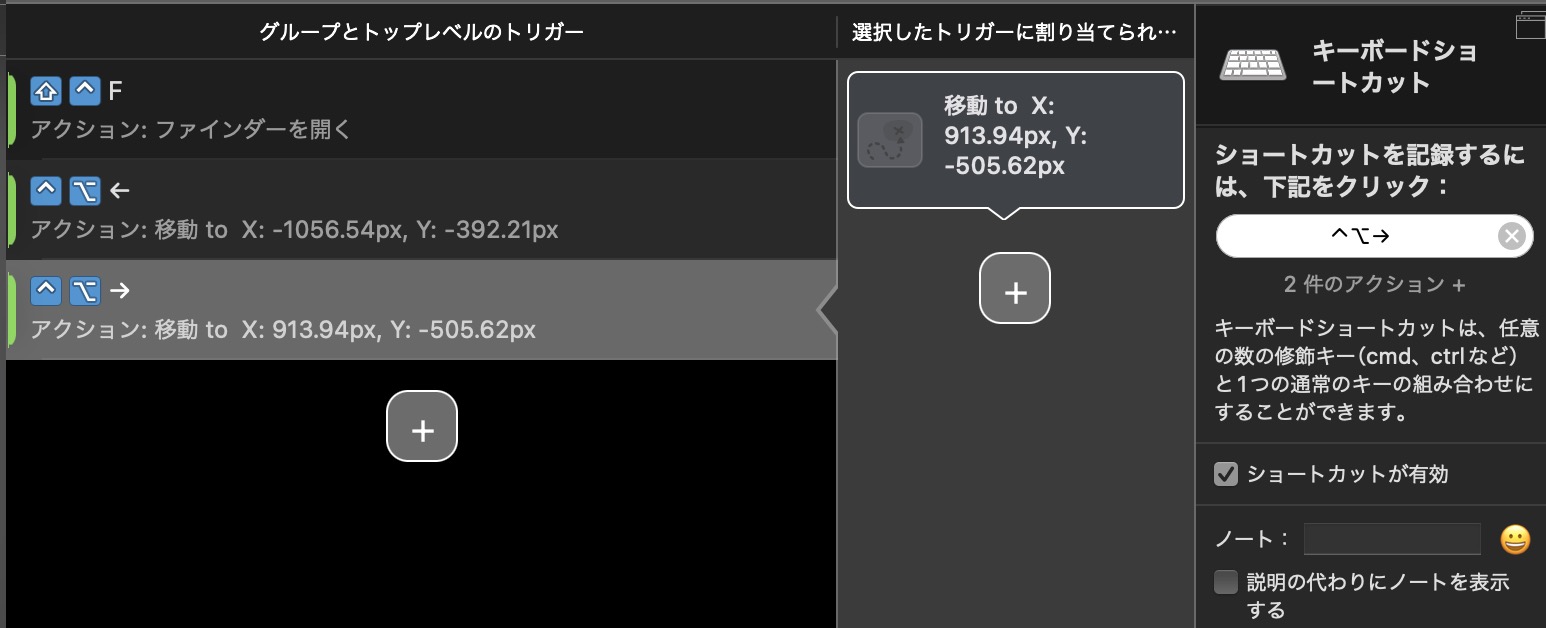 で、現状マウスカーソルがあるディスプレイ側の操作スペースがキーボードショートカットでは切り替わるというところまでは分かりました。