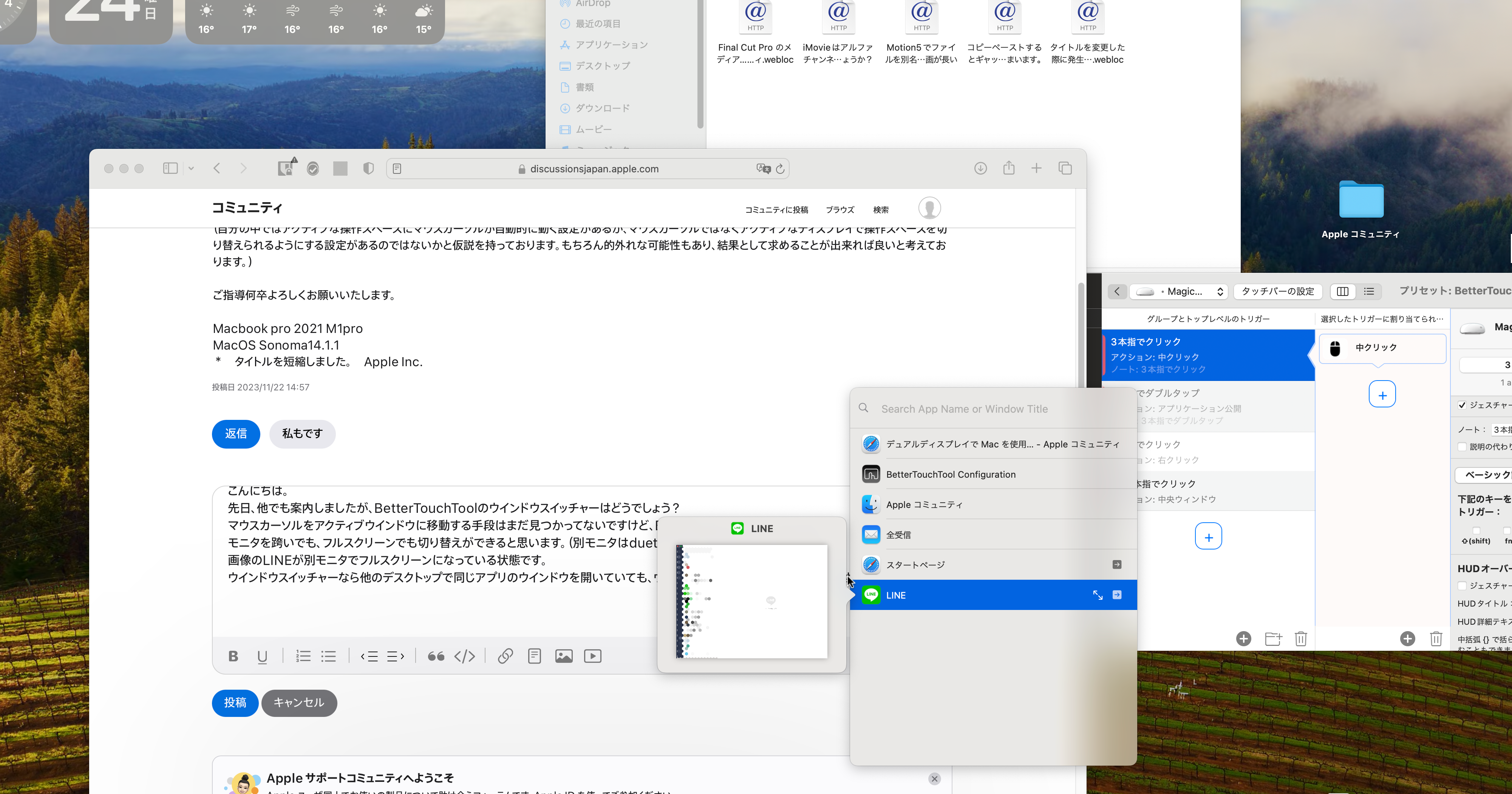 で、特に左側のディスプレイでチャットを確認しようなどとしてキーボードのみでアプリを切り替えたいとなるのですが思った側のディスプレイで操作スペースを切り替えられずにいます(control+左右矢印)。