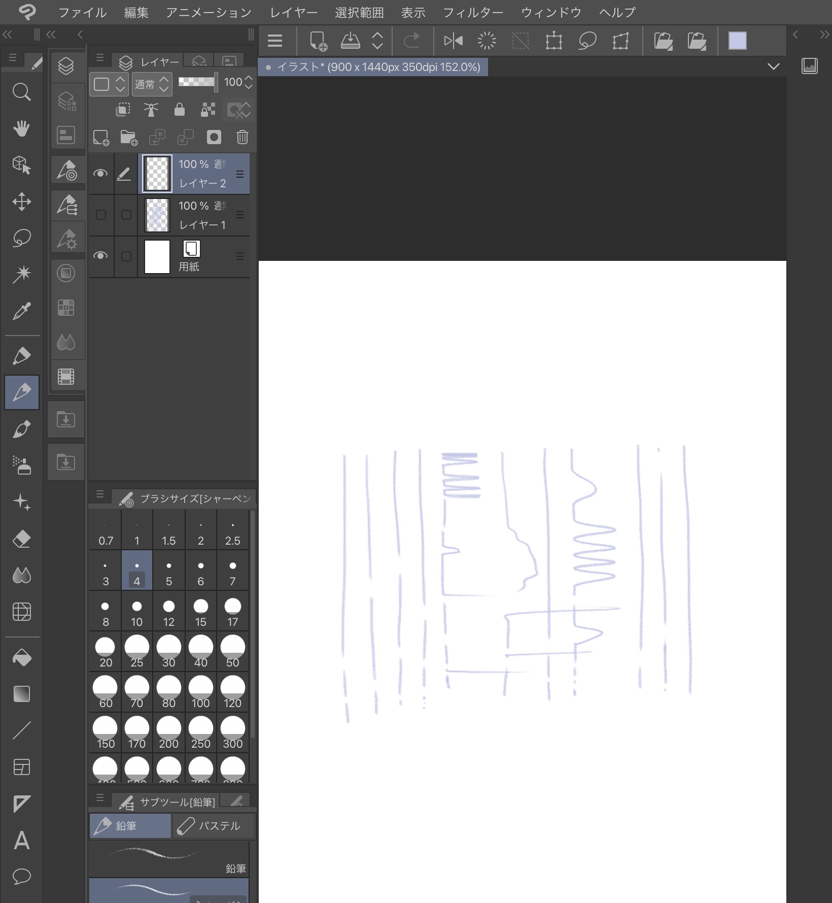 上記の画像はiPad Air第4世代にApple Pencil第2世代を使って描いた縦線です。