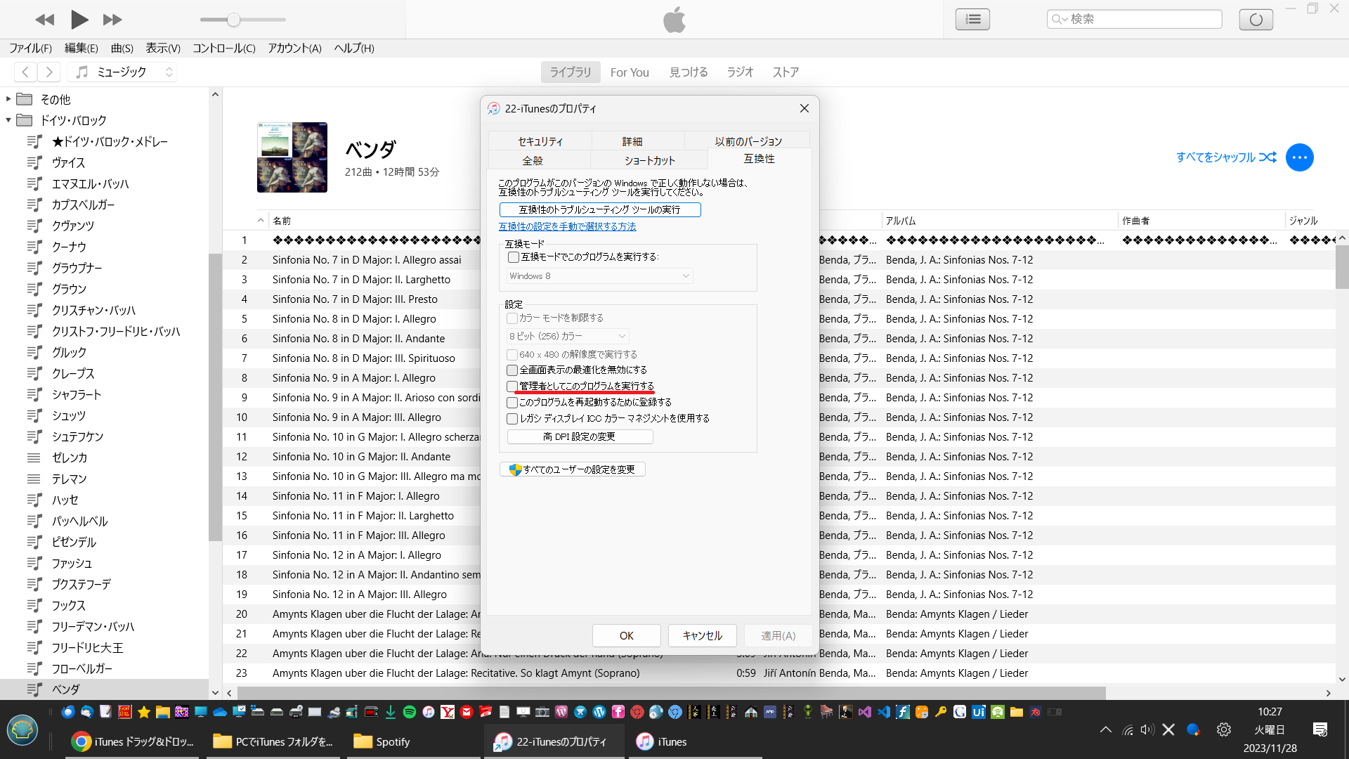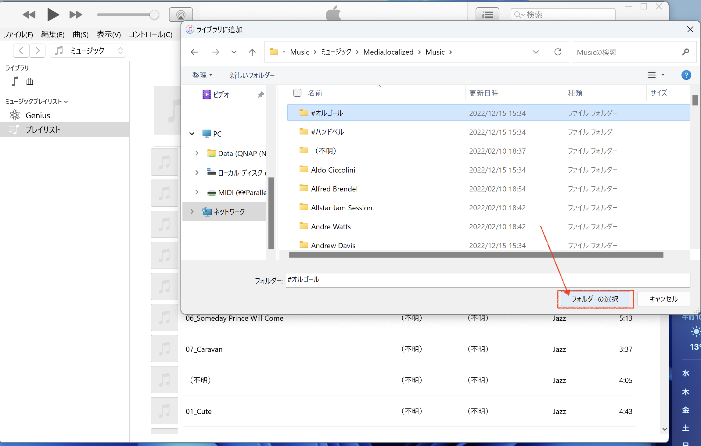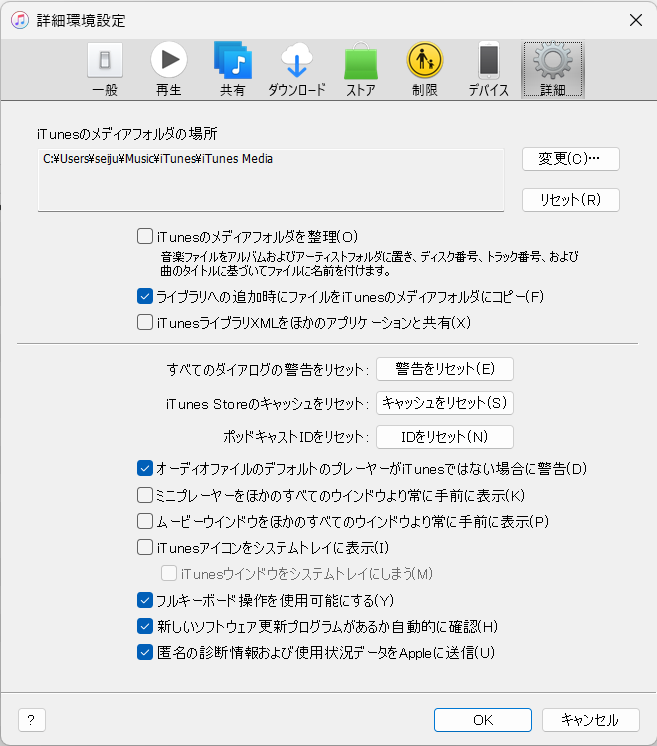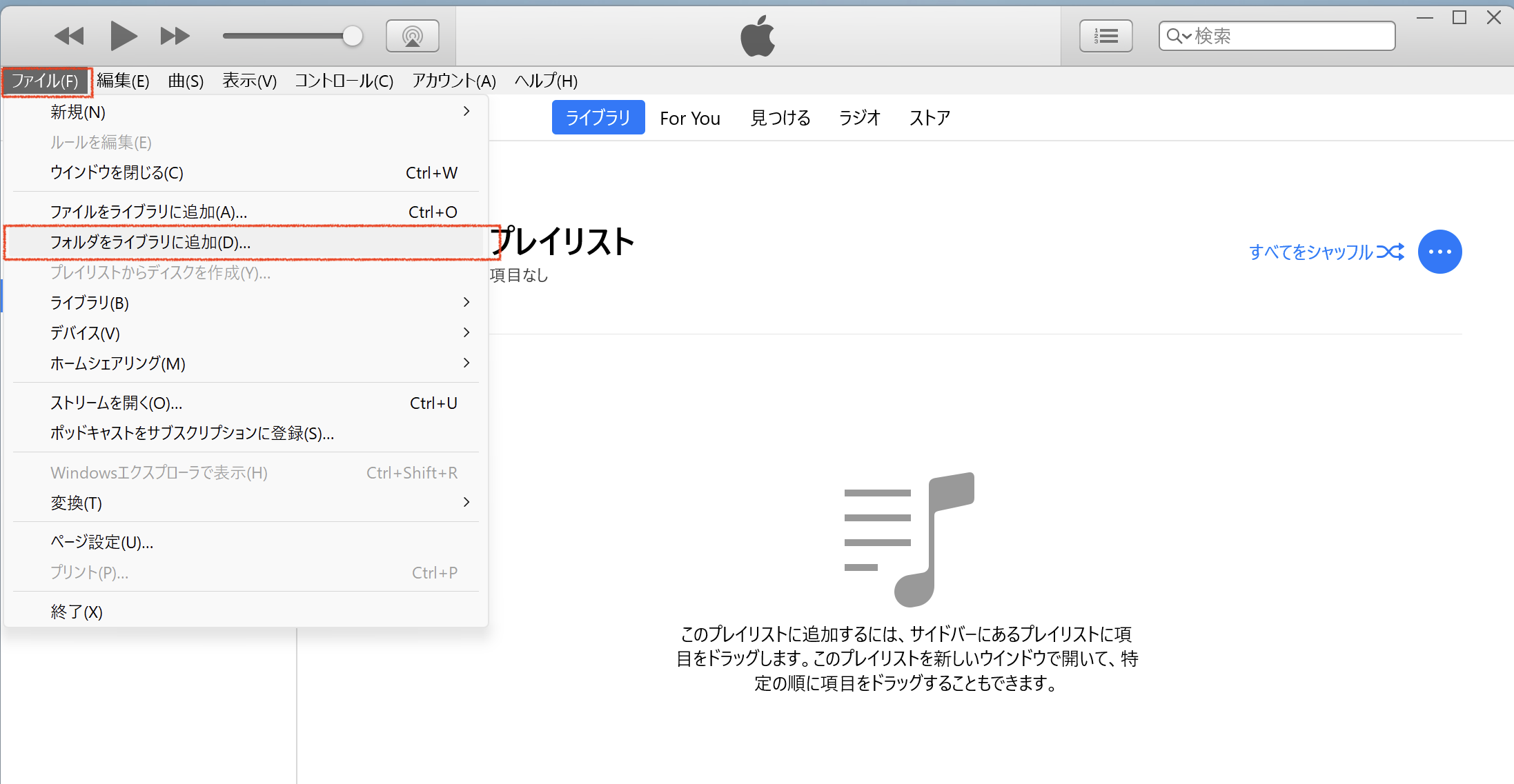 PC で iTunes フォルダのドラッグアンド ドロップができない
