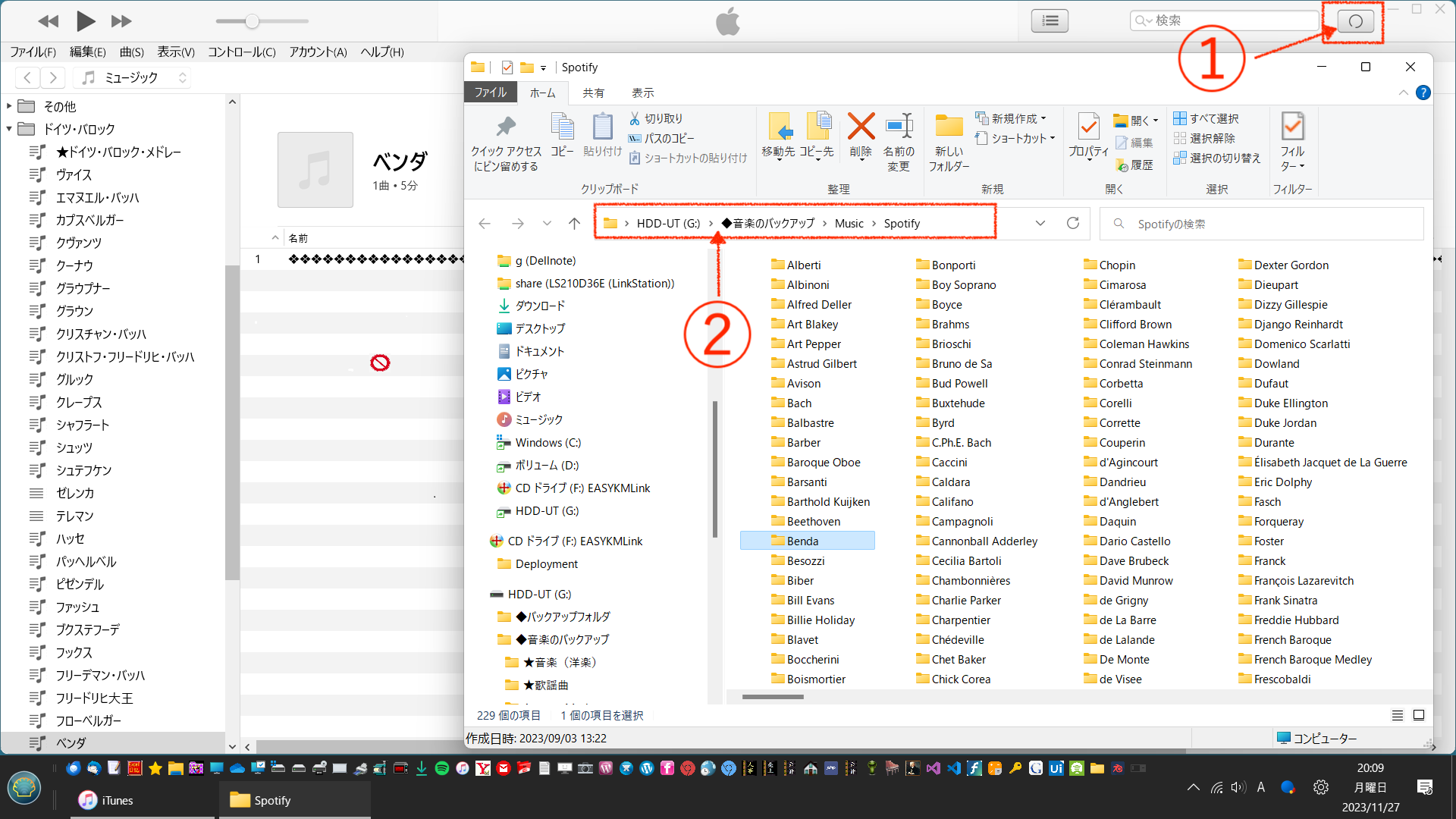 ② 音楽ファイルがある場所のフルパスは? 選択したフォルダの中身は確認できますか?