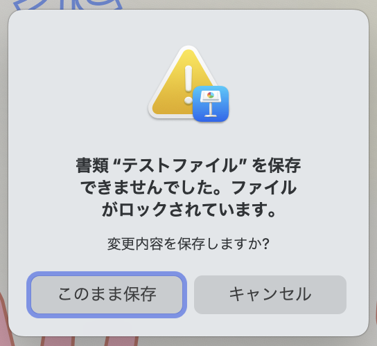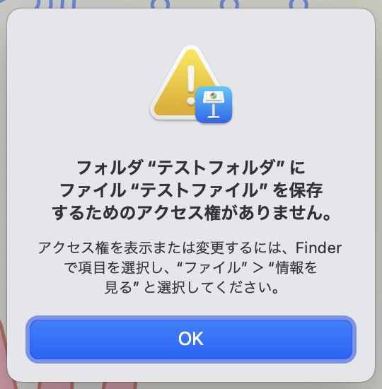 「アクセス権」エラーのため、Keynoteファイルを保存することができない