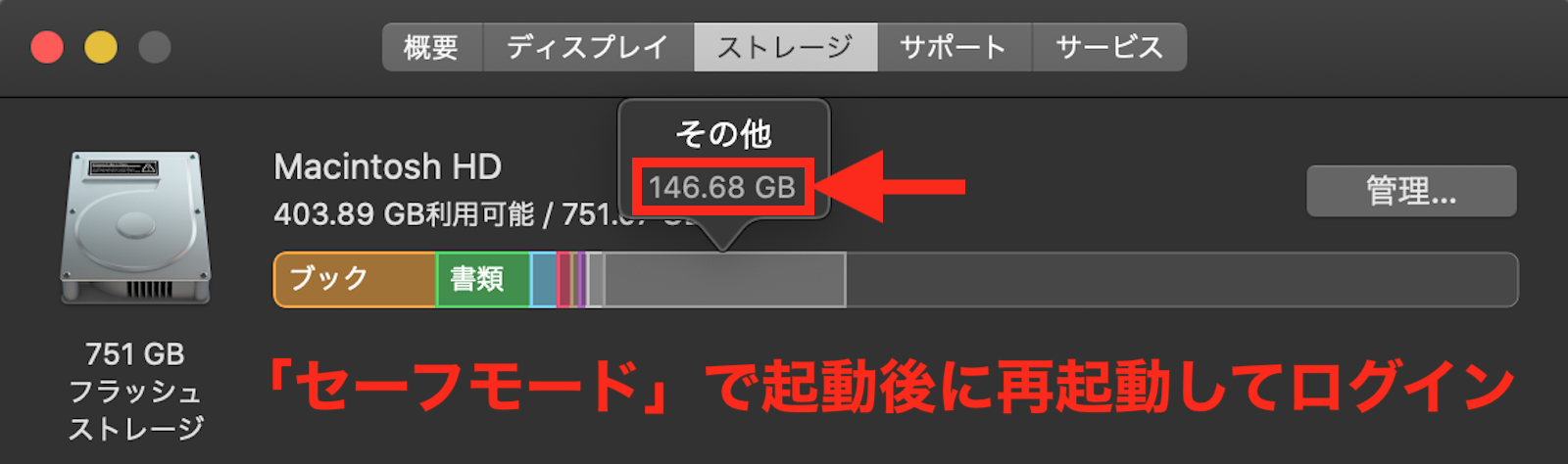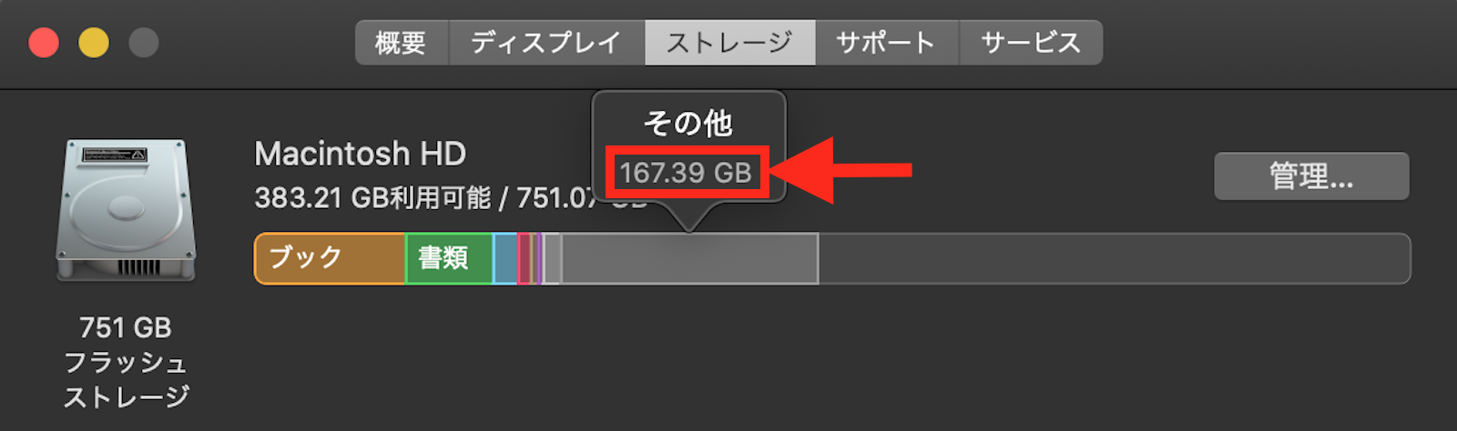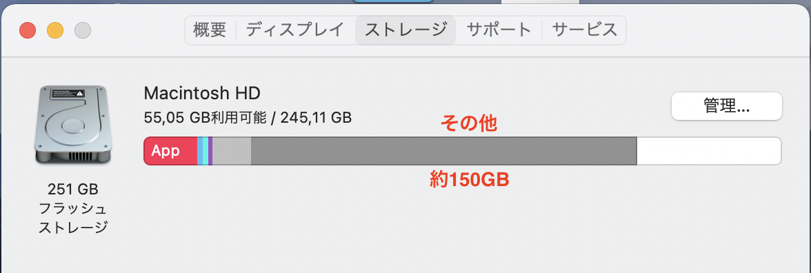 使用している容量で一番大きいのは「その他」で約150GBです。