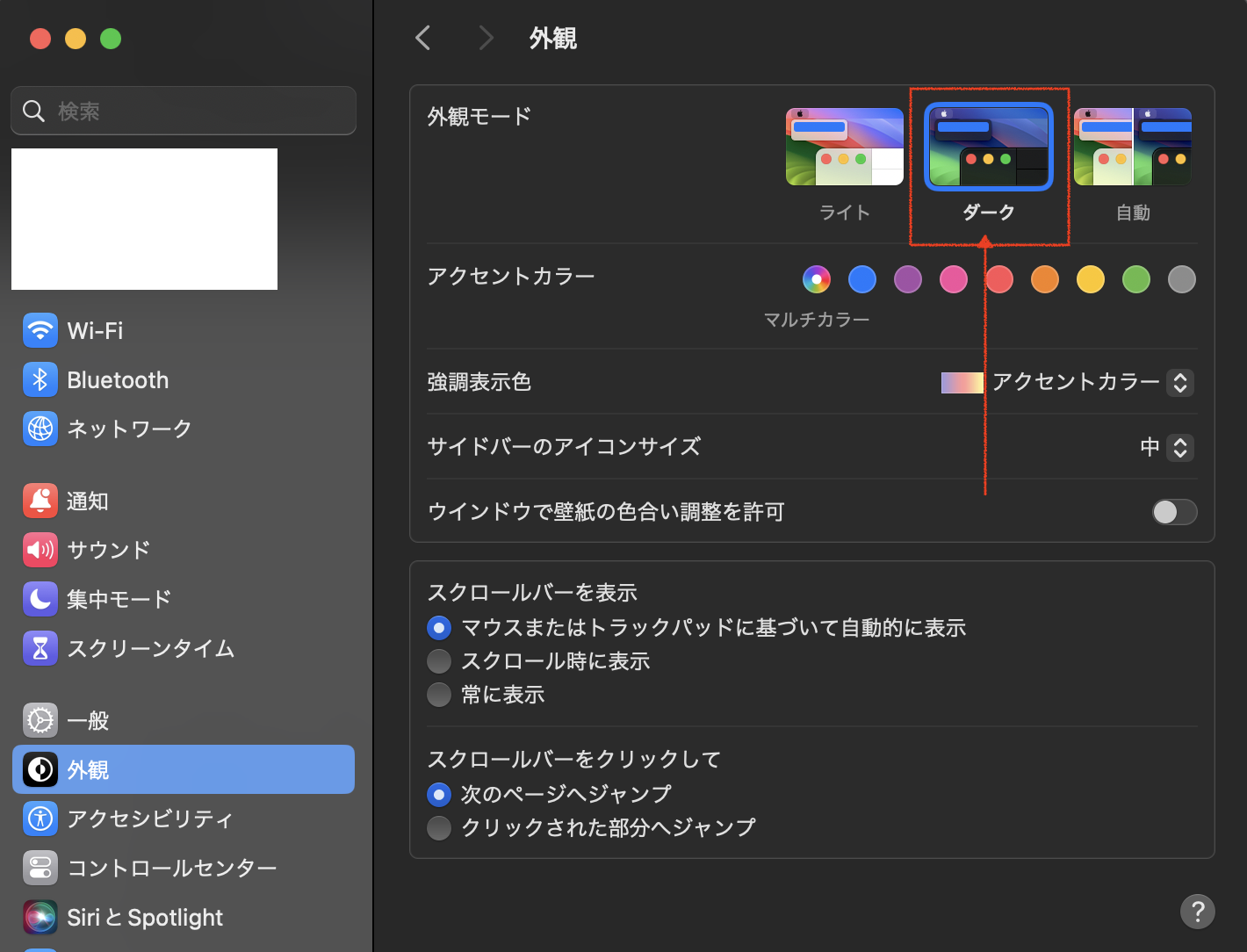darkにならないというのは、「ダーク」アイコンを選択できないのでしょうか、